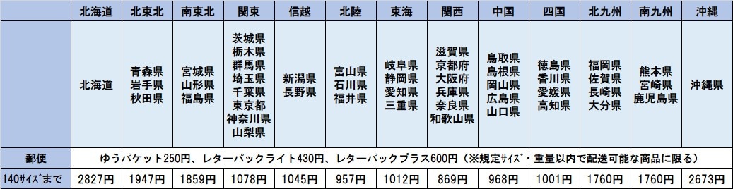 小物商品および離島など一部地域につきましては、日本郵便でのお届けとなります。